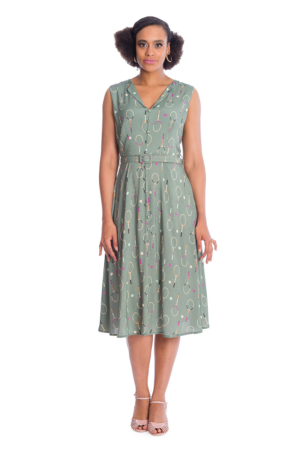 We already had this gorgeous tennis racket print on our radar when we picked the Culottes in the same print, but we know they're not for everyone, and this charming 30s - 40s style dress is certainly one you have to love.