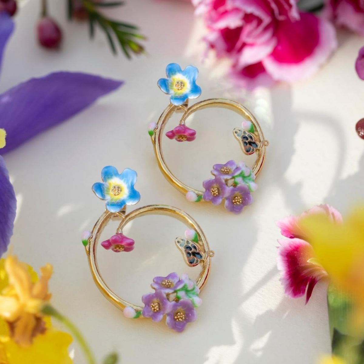 The hand-painted enamel detailing on these absolutely charming flowers will compliment outfits both casual and glammed up. 18ct gold plating enhances the centre of the delicate blooms for an amazingly luxe finish, and there's even a delicate butterfly paying a visit to the garland!
