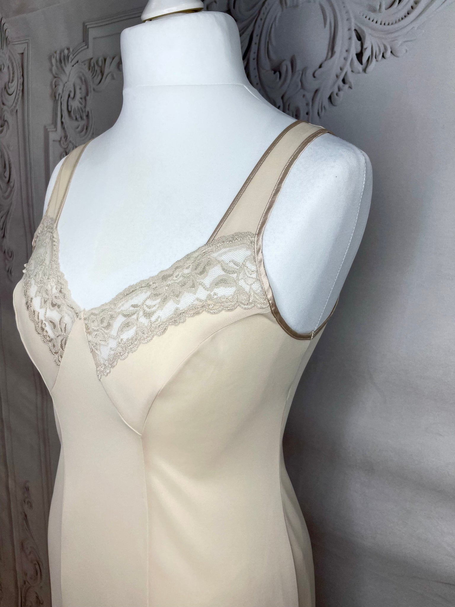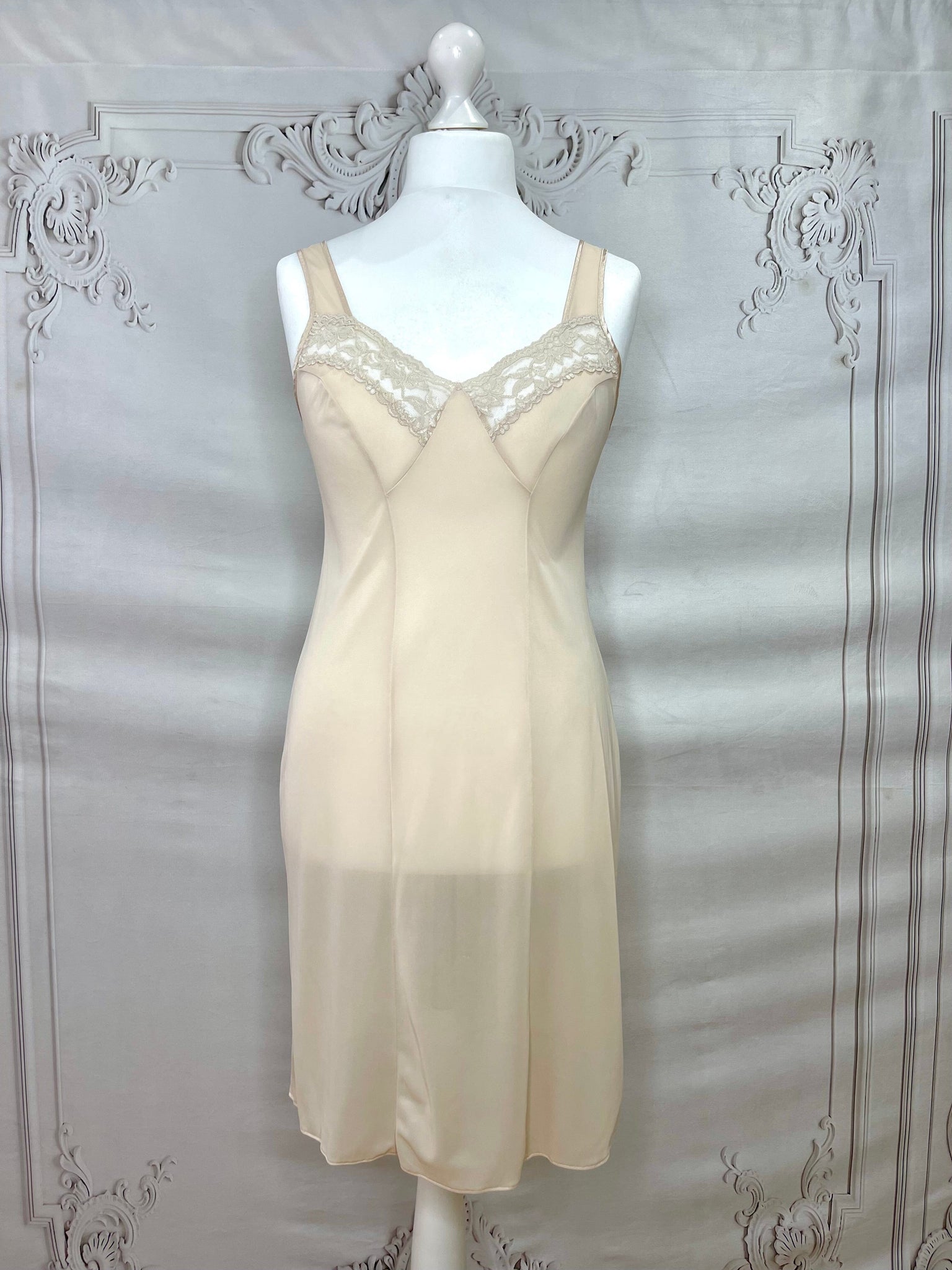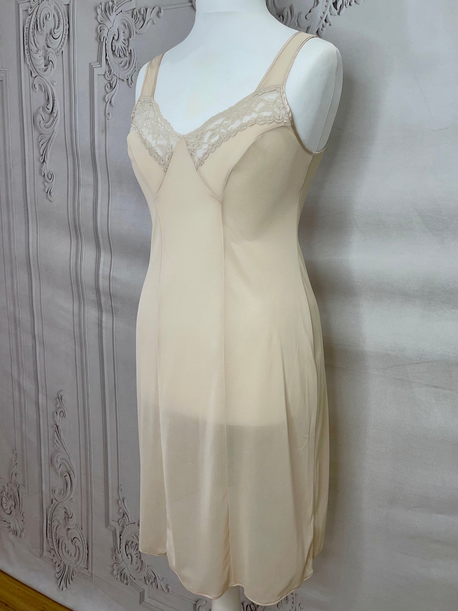 1960s Lace Trim Full Slip Under Dress
