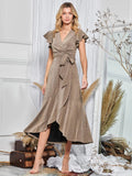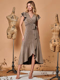 Fluttery short angel sleeves and glittery stretch nylon for ultimate comfort and chic sparkle.
