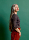 Specially dyed for our sustainable friends at Palava, this knit - like most of their beauties - is nicely fitted at the waist with three quarter sleeves, and features an extra sparkly contrast trim.