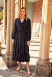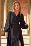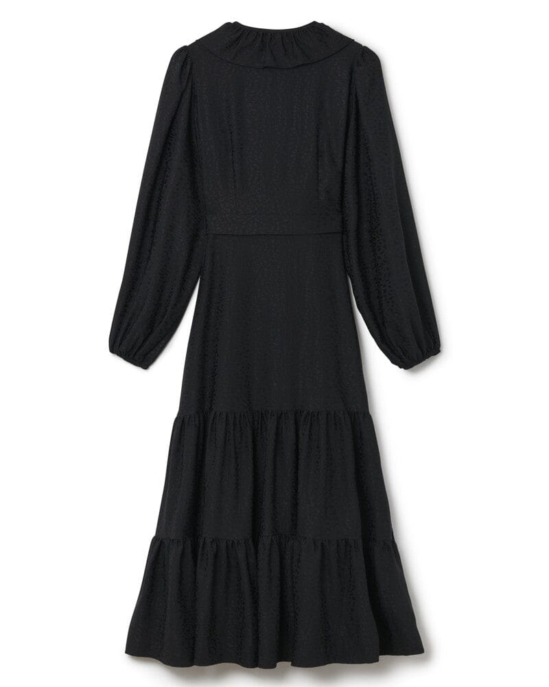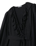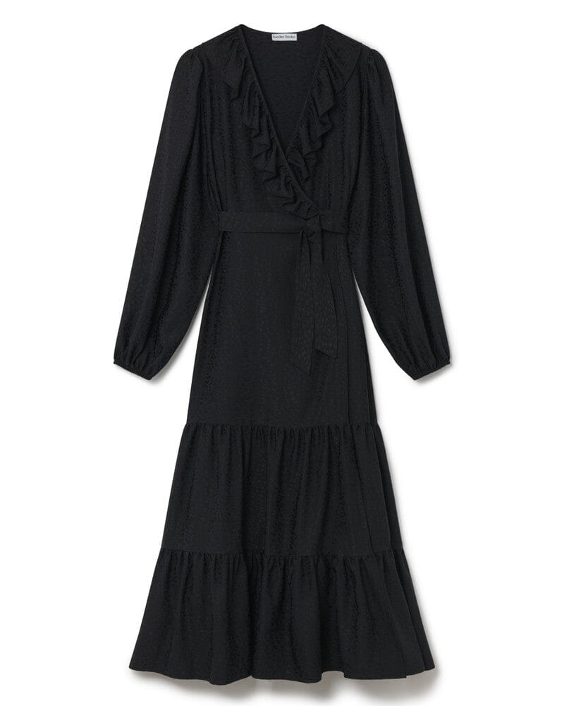 This true wrap dress is designed to flatter all body shapes, boasting a chic jacquard fabric with a stunningly draped tiered skirt and elegant balloon sleeve.