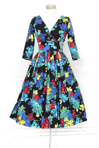 This one won't stay on the racks for long! A new style for the new season, the Cindy dress has a flattering 3/4 length sleeve; perfect for cooler nights and in between seasons. In the most stunning print, the v neckline crosses down into a fitted front waistband, with a wide tuck skirt and has side seam pockets.