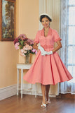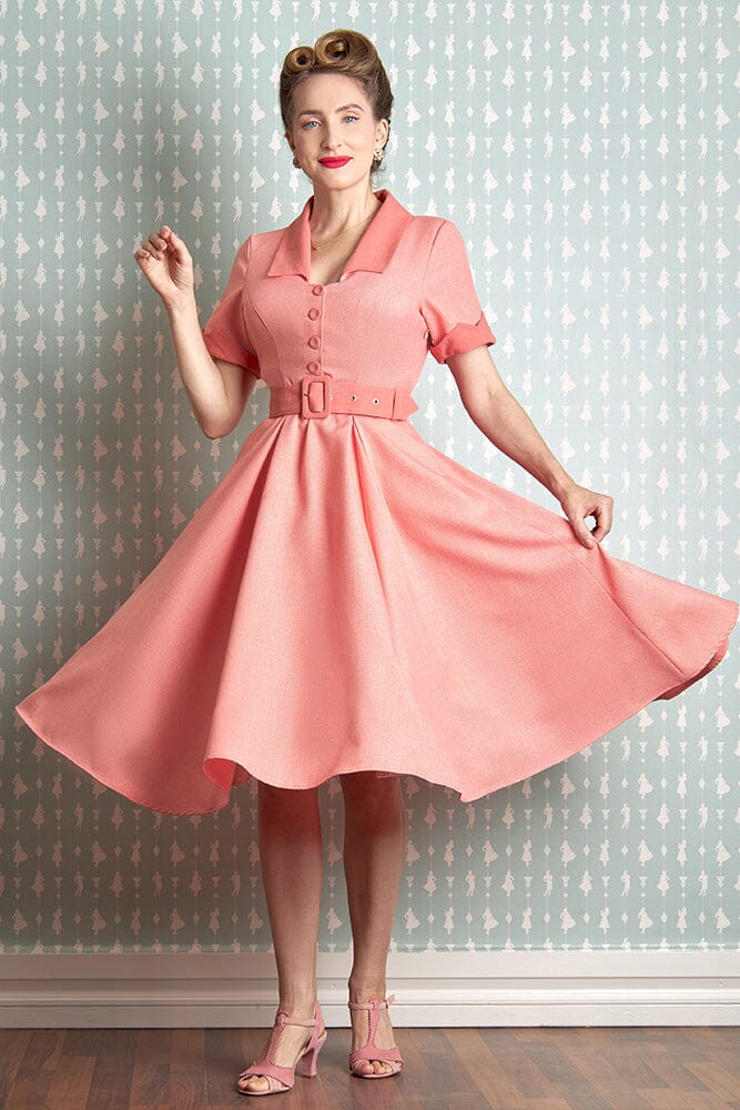 Inspired by none other than the late Queen, Elizabeth II (who always dressed so impeccably!) this stunning swing dress has the most darling contrast features and a broad belt to cinch you at the waist.