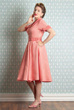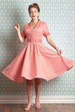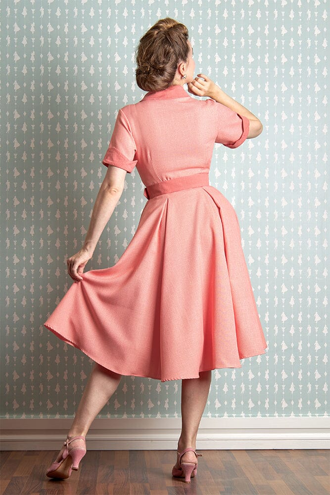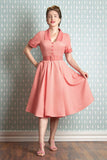 With a beautifully 50s style neckline and button up front, the gentle pleats at the skirt are flattering and add volume and movement; and the added pockets don't hurt either!