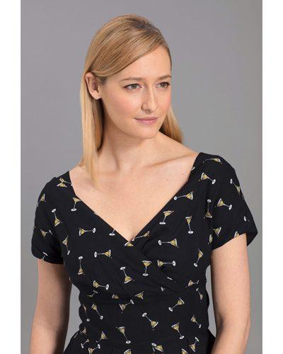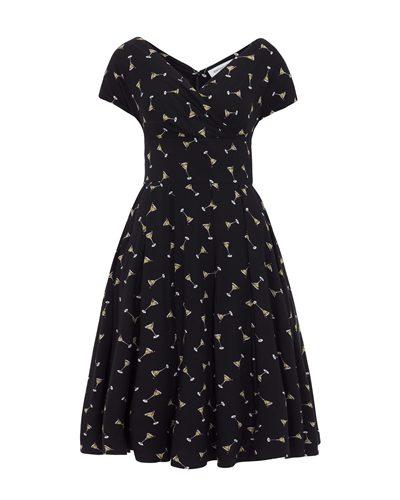 Wow! For those gals who fell in love with our Ada dress, this is a similar style, with its stunningly elegant off shoulder neckline (although not so much that you have to forego a bra!) and broad, defined waistband. The full skirt is just delightfully floaty and pleated, with those all-important pockets in the sides. We fell in love with this 50s inspired print, and we’re pretty sure you will too! Pair with our glorious Lola Ramona Elsie Strut shoes for the ultimate vintage party vibe.