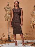 Bodycon dresses are always a really spectacular statement and celebration of your figure, and this bronze beauty is utterly goddess-like!