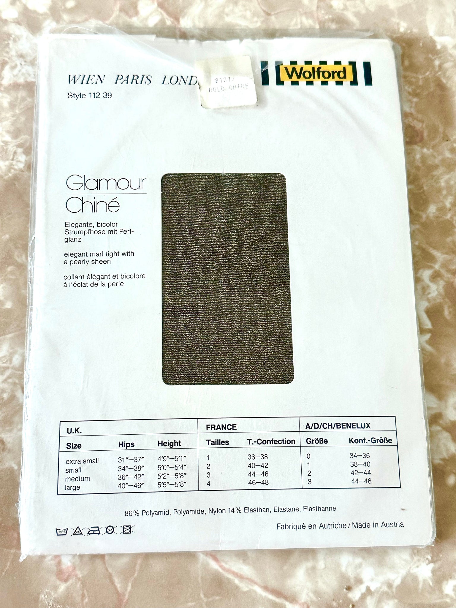 Gold shine & shimmer tights from Wolford circa 1994. Brand new in orginal packaging.