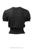 The delicate lace knit has sweet short sleeves and a chic 40s style neckline. Wear with our Tessa Swing Pants and a headscarf for a fantastically easy to wear look.