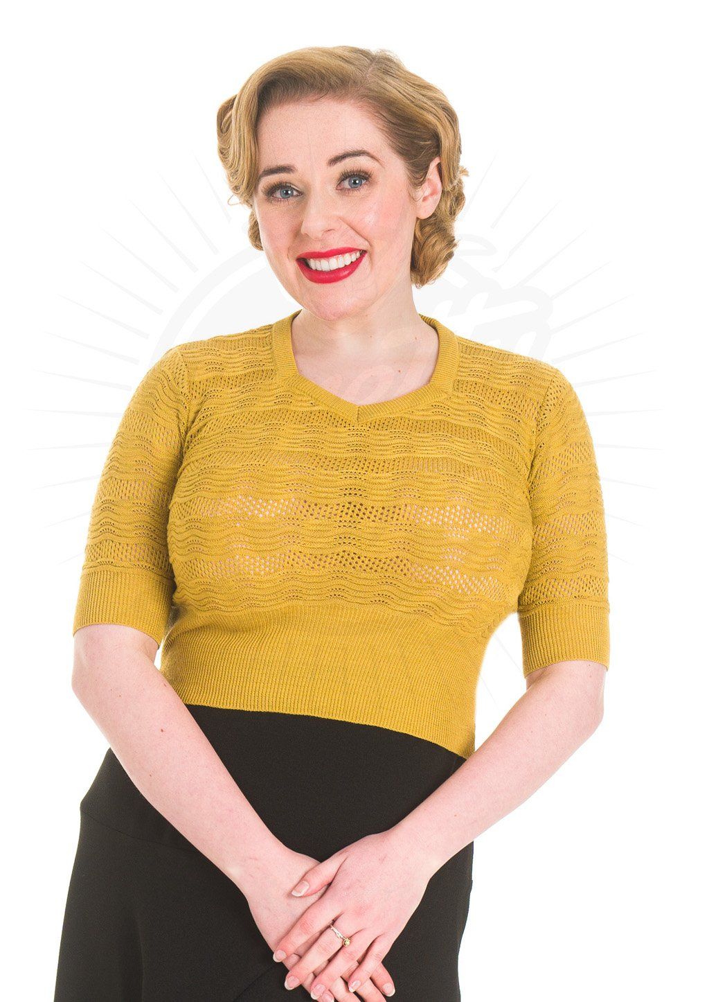 The most perfect little retro knit that will have you reaching for for the jive records! A great authentic length with defined ribbing at the waist that makes it just right to pair with our high waisted trousers and skirts, although you’ll be able to pair it with jeans and even underneath dresses as well!