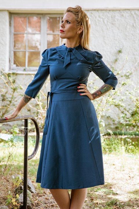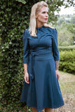Beautiful detail to the front adds intrigue - the chic neck tie and tailored panel keep the modest neckline looking magical rather than matronly, and the waist sash further emphasises the structured yet soft shape. Zips at the back and also features three quarter sleeves for extra comfort.