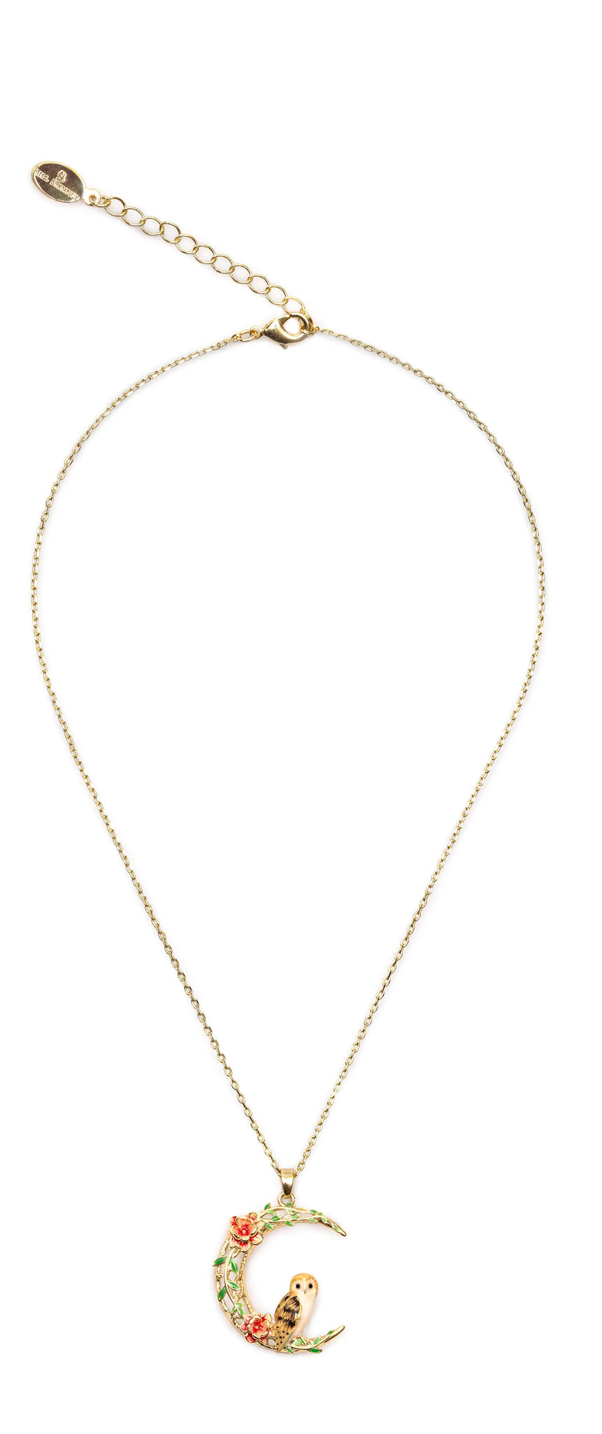 Hand painted enamel with intricate detailing, and 18ct gold plated highlights, and that crescent moon is covered in magical blossoming flowers. Exquisite!