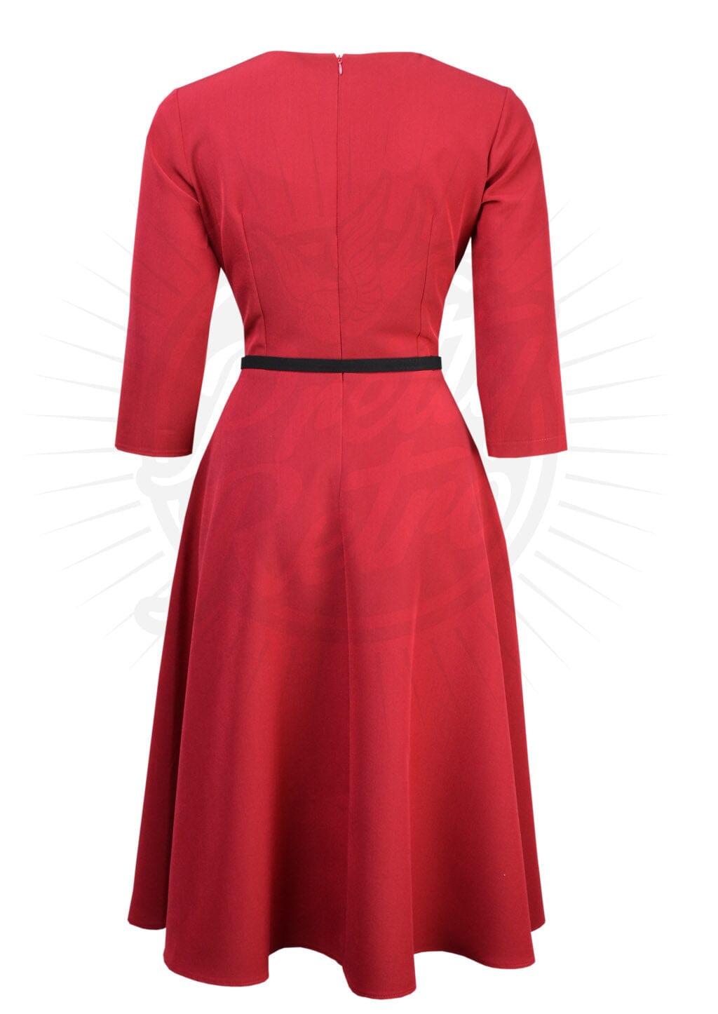 Topped off by that ravishing red colour, and sporting lovely longer length sleeves, this spectacular swisher has a touch of spandex for even better fit and zips up the back.  Best of all, you can pop her in the wash rather than all the faff of dry cleaning!
