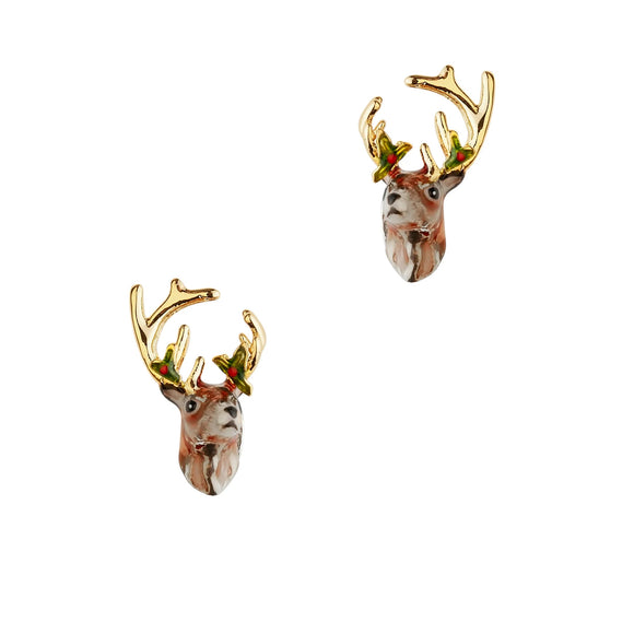 The luscious gold plating and hand-painted enamel makes each piece really gorgeous to wear and look at, these chic studs have magnificent antlers with just a touch of holly for that festive feel.