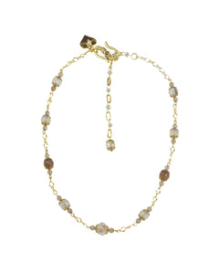 Beautifully vintage in style, this very elegant chain is studded with the most beautiful beads of crystal and agate, and measures 18cm drop at the shortest length. Wonderfully versatile!